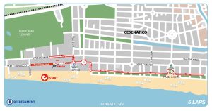 The 1.9 km swim will start from the Cesenatico Beach in the sheltered waters of the Adriatic Sea.